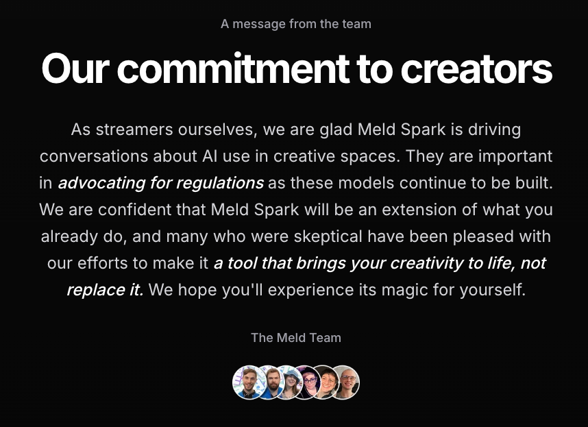 To their credit, Meld Studio put out a transparency report addressing the concerns head-on. Their position is that Spark is meant to extend a streamer's creativity, not replace the human behind it. They've also said they're advocates for AI regulation as these models continue to develop.